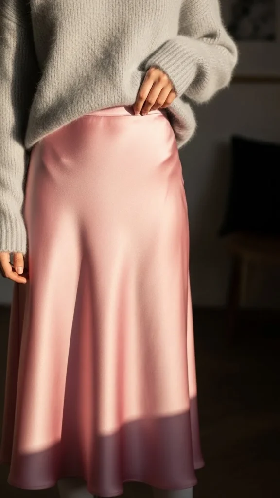 10. Pink Satin Skirt With a Fuzzy Sweater