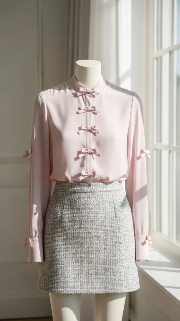 11. Bow-Detail Blouse With a Mini Skirt