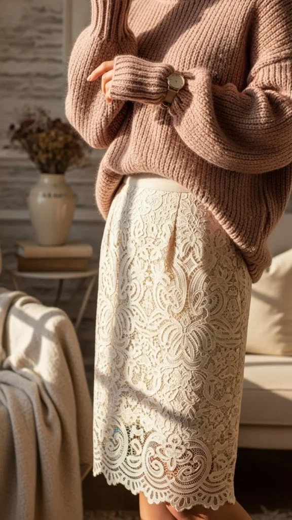 15. Lace Skirt With a Cozy Sweater