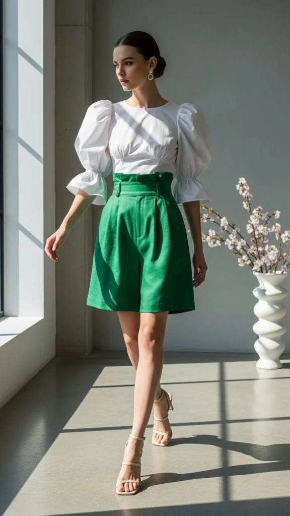 19. Puff-Sleeve Top With High-Waist Shorts