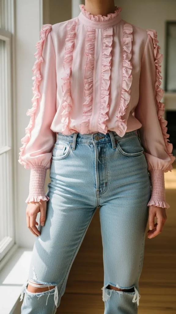21. Ruffled Blouse With Light-Wash Jeans