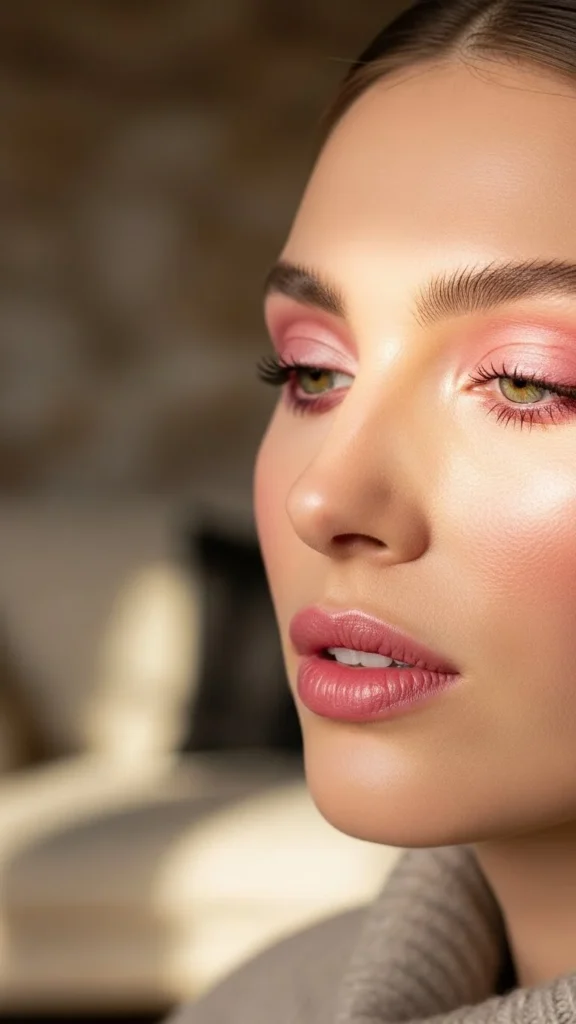 23. Neutral Outfit With Pink Makeup Focus