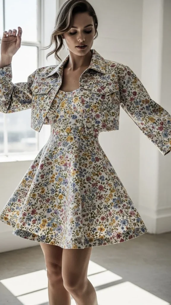 7. Floral Mini Dress With a Cropped Jacket