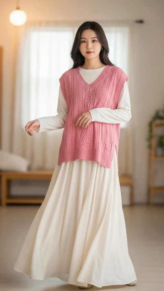 8. Pink Knit Vest With a Flowing Skirt