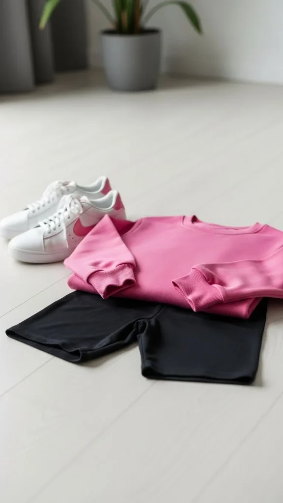 14. Pink Crewneck With Bike Shorts