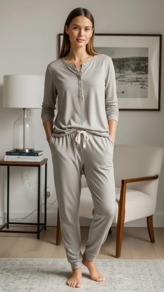17. Neutral Henley With Lounge Pants