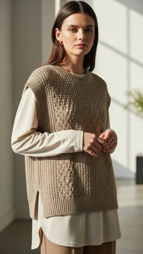 22. Soft Knit Vest Over Long-Sleeve Tee