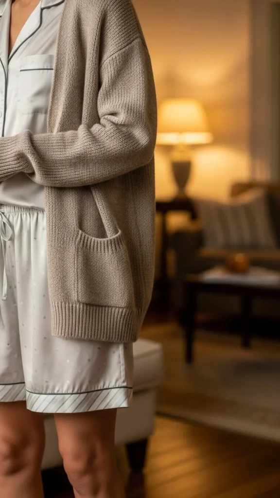 24. Neutral Cardigan With Pajama Shorts