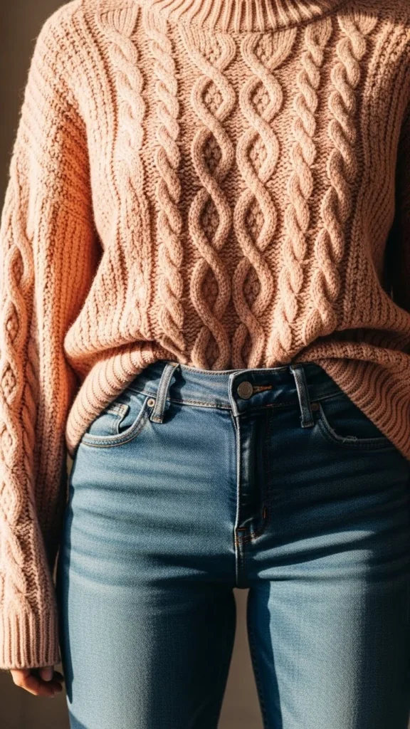 11. Blush Sweater With Dark Denim