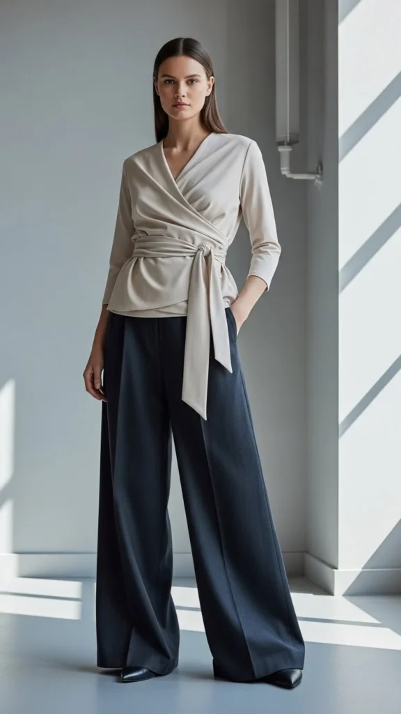 13. Wrap Top With Wide-Leg Pants