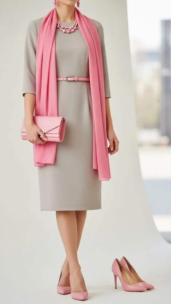 15. Neutral Dress With Soft Pink Accessories
