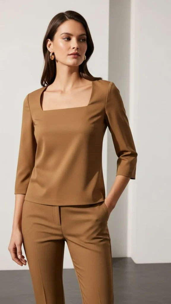 19. Square-Neck Top With Slim Pants