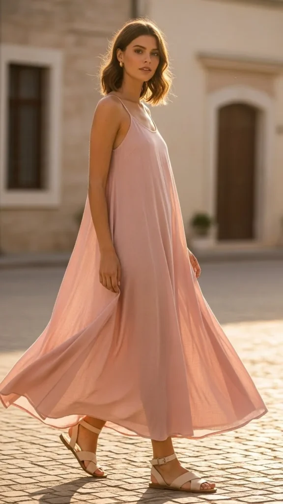 20. Soft Maxi Dress With Minimal Sandals