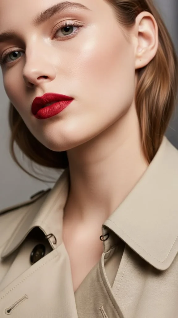 21. Neutral Outfit With Red Lip Focus