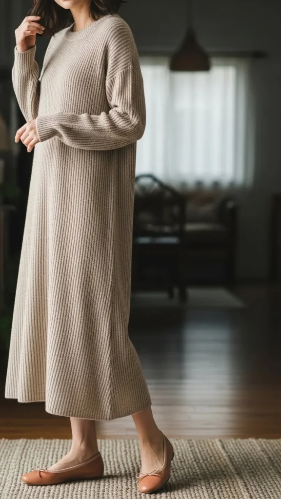 4. Knit Dress With Ballet Flats