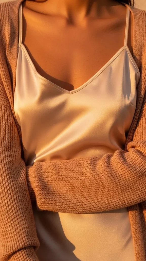 5. Satin Camisole With Cardigan