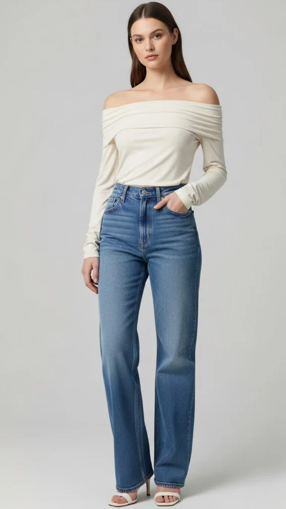 7. Off-Shoulder Top With Straight Jeans