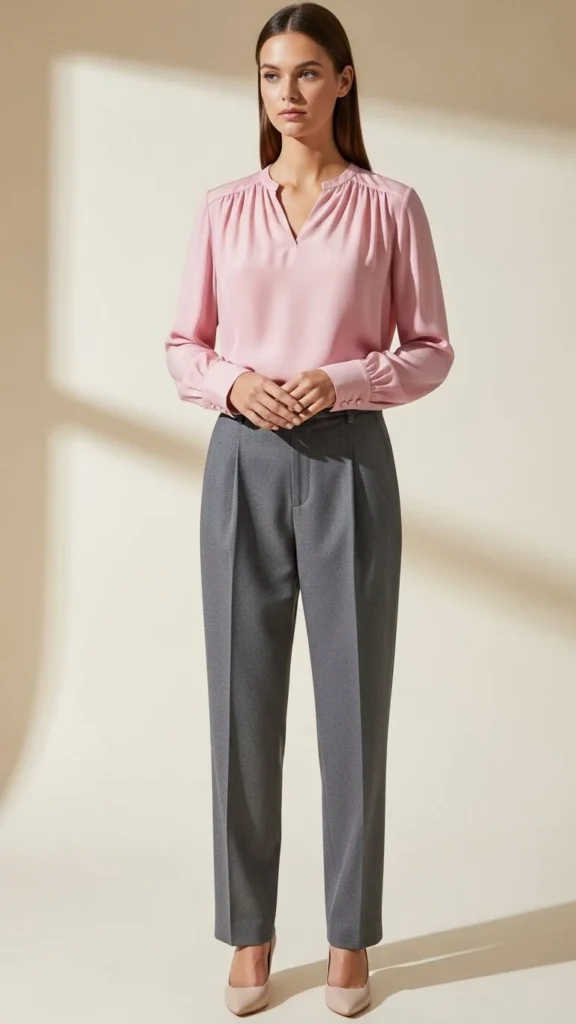 8. Soft Pink Blouse With Tailored Pants
