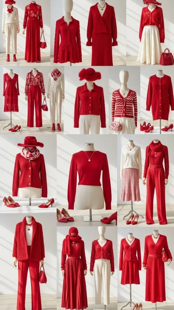 Red cardigans are versatile. Layer them over a floral dress for a playful and approachable outfit. DIY idea: sew on cute buttons or patches for a personalized touch. Pair with flats, ankle boots, or loafers. This combination works well for daytime dates, brunches, or casual gatherings. Finish with a small handbag and light makeup for a soft, romantic vibe.