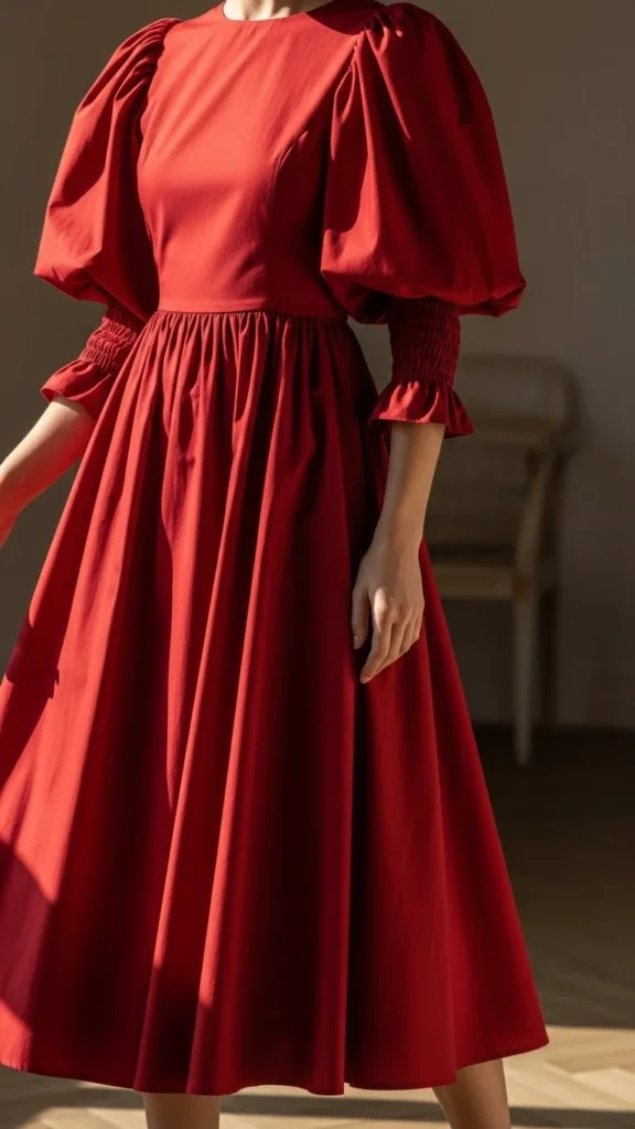 11. Red Puff-Sleeve Dress