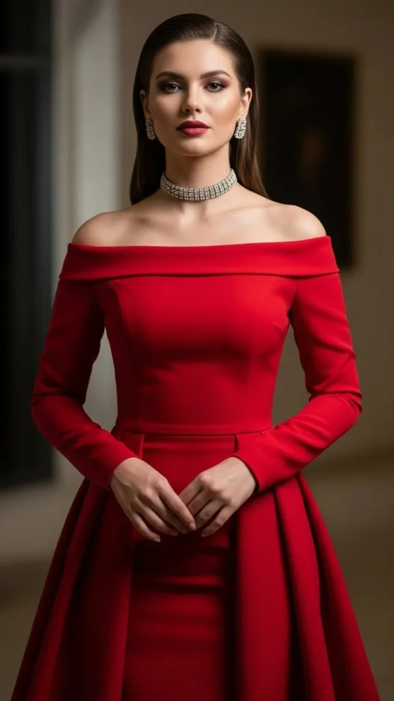 15. Red Off-Shoulder Dress