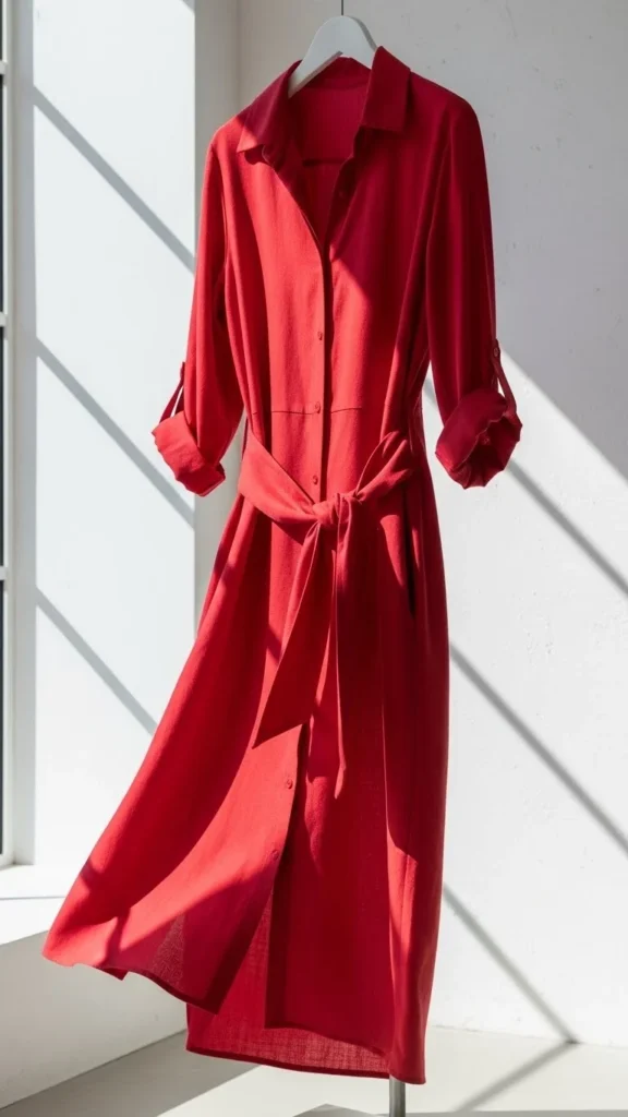 20. Red Midi Shirt Dress