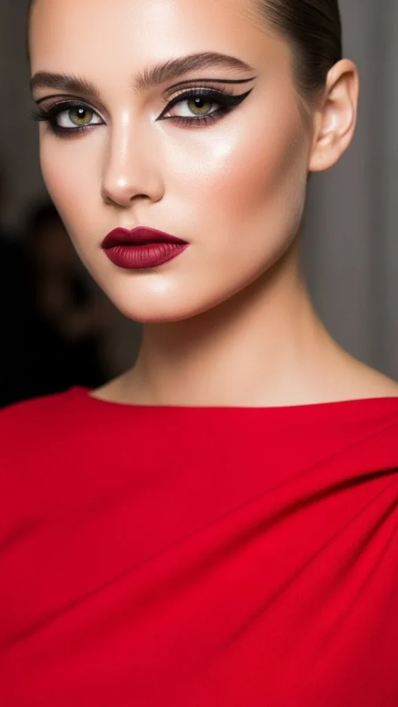 27. Simple Red Dress With Statement Makeup