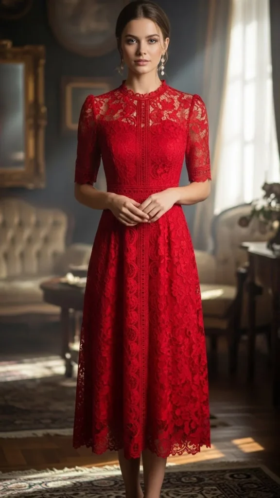 3. Red Lace Midi Dress