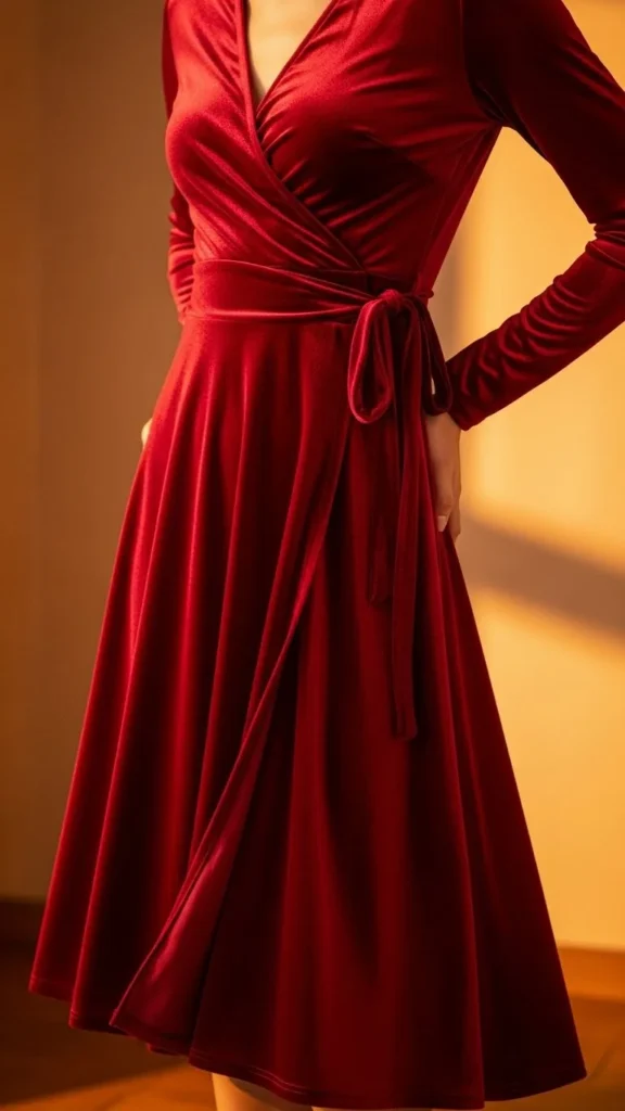4. Red Velvet Wrap Dress