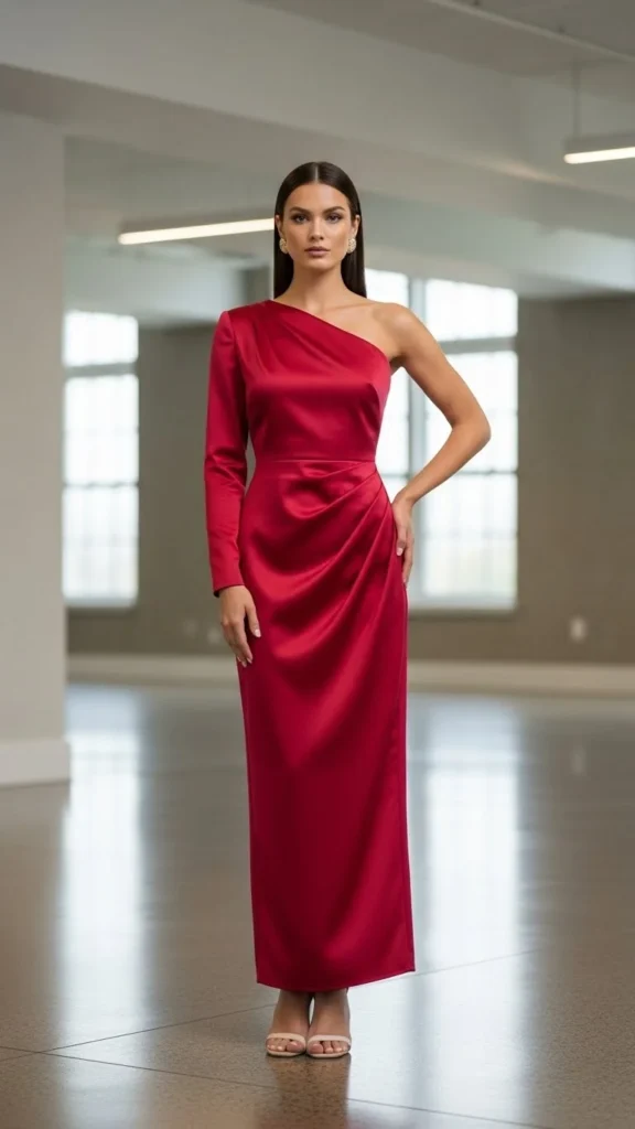 One-shoulder cuts feel modern and striking.