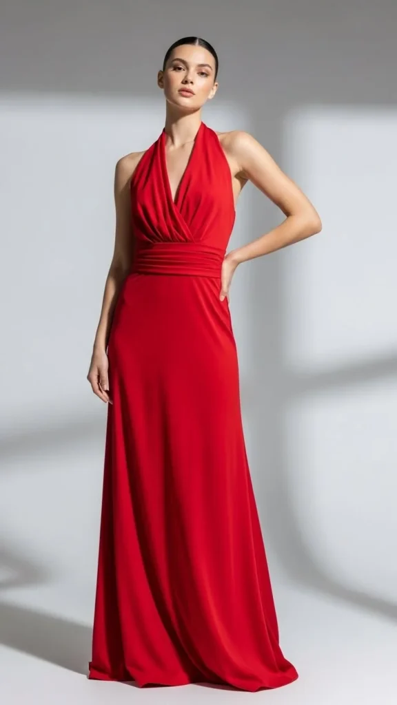 8. Red Halter Neck Dress
