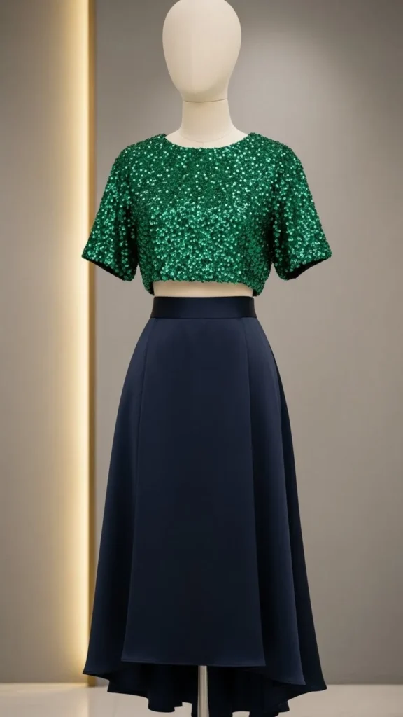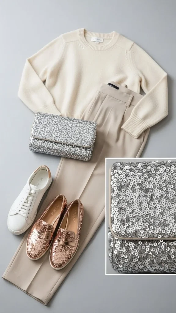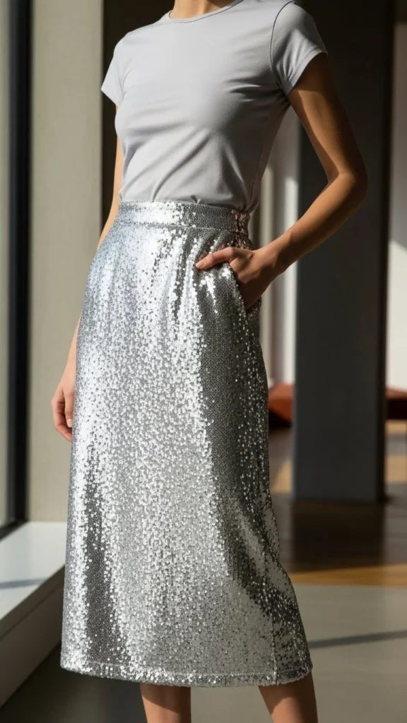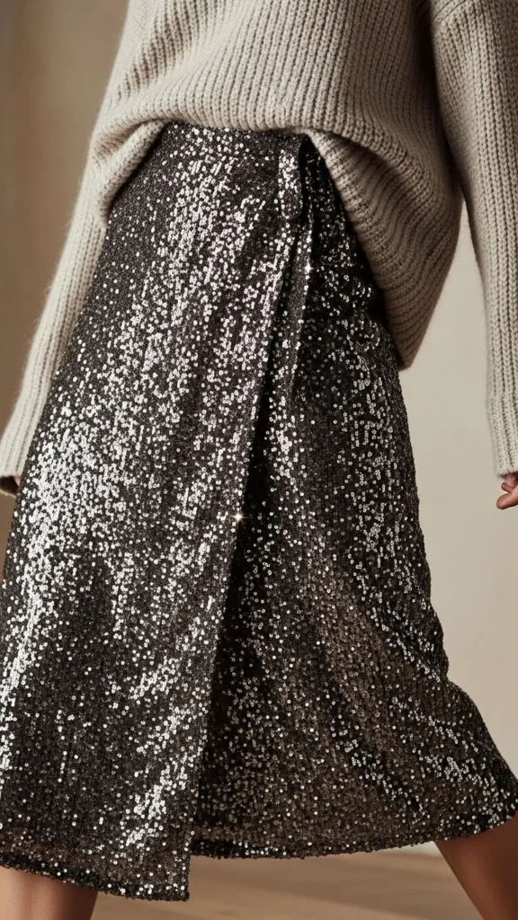 A sequin mini skirt feels fun right away. Pair it with a soft sweater to keep things grounded. This mix looks styled without feeling stiff.