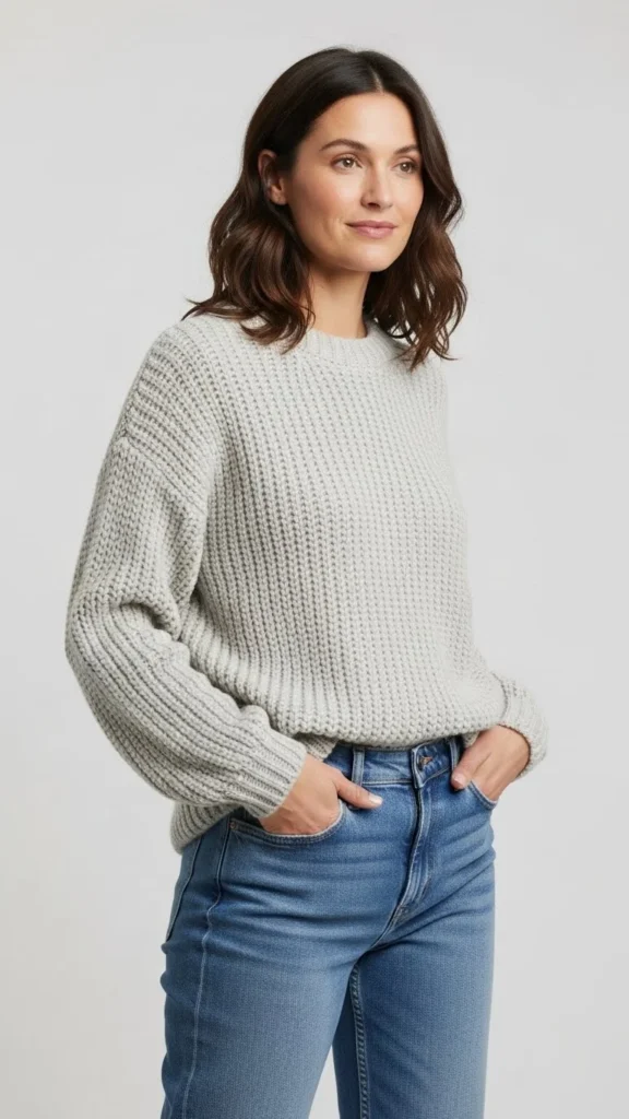 This outfit works every time. A cozy sweater adds warmth and softness.